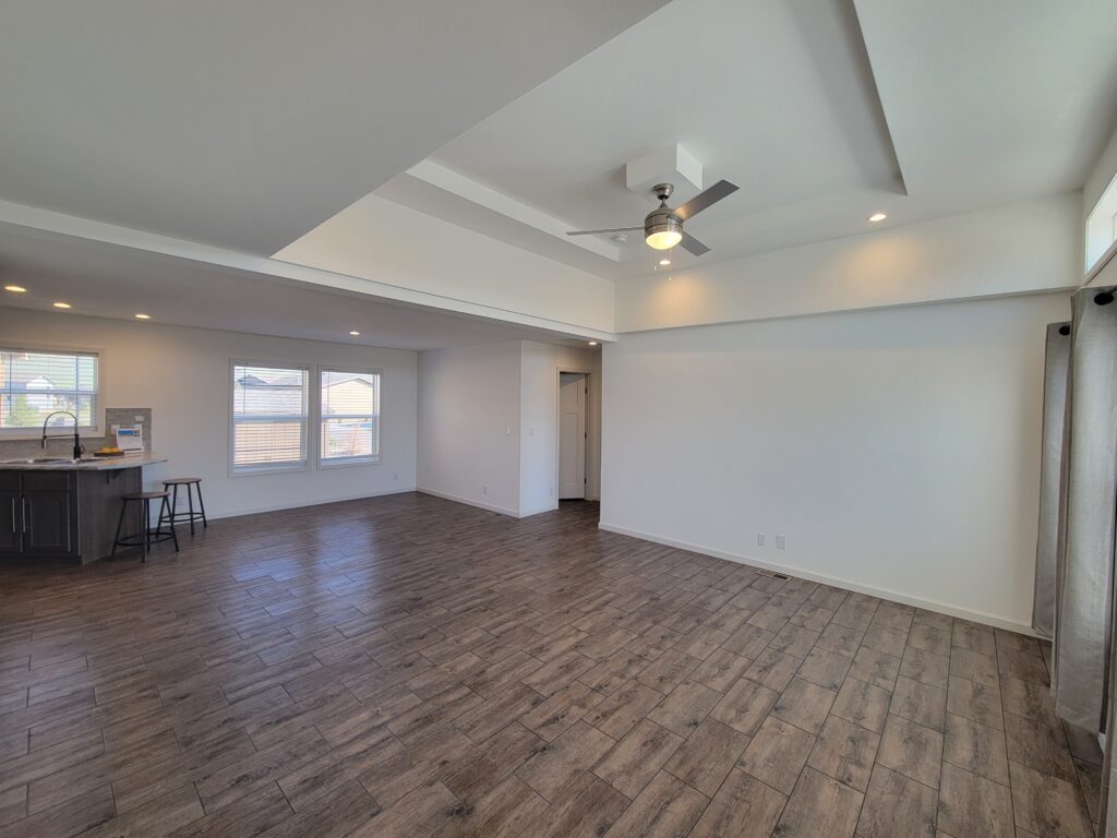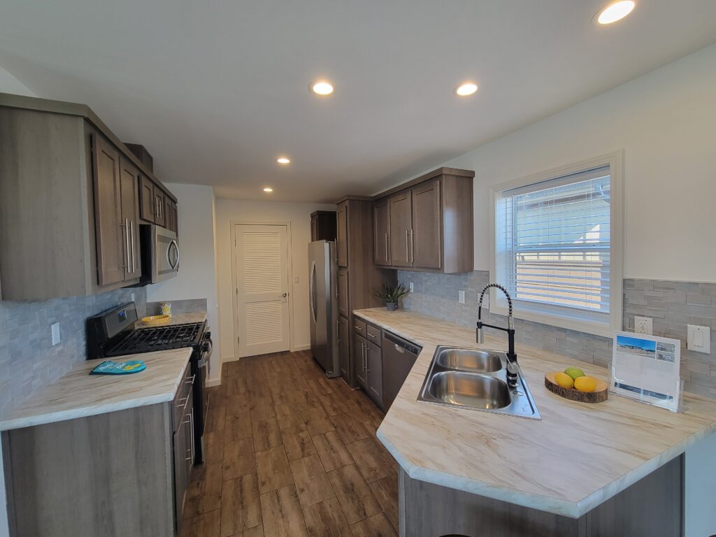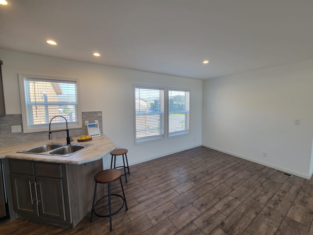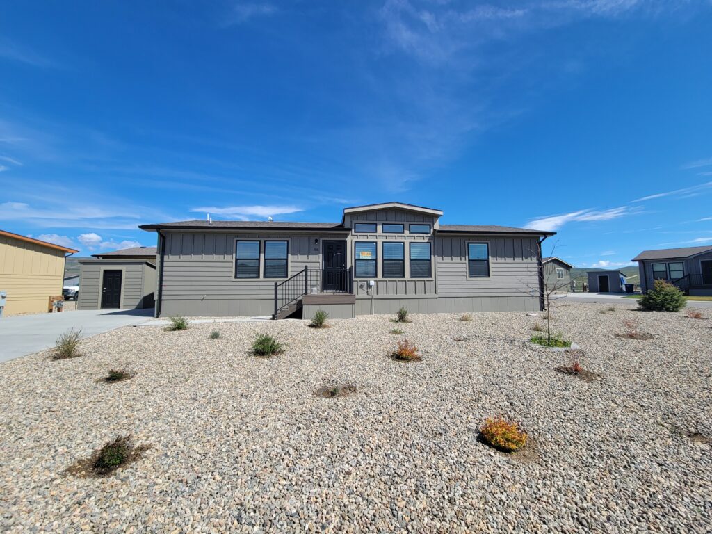 On a spacious, corner site this 3 bedroom, 2 bathroom home is very bright and inviting. With an open floorplan this home highlights the main living space with a coffered ceiling and extra high windows. The galley kitchen is hidden off the large dining area where there is stainless steel, Whirlpool appliances. The laundry room has a second entry to the home located on the opposite side of the kitchen that includes a built in desk as well as coat hooks and cubbies for all your outdoor gear. Washer and dryer included with a 12 month rental. The primary bedroom has a relaxing tub with a separate shower for convenience and each of the bedrooms have walk-in closets for extra storage space. Contact a Sun Homes agent today for a tour. We also offer 3rd party financing, conditions and restrictions may apply and is an equal housing opportunity.